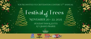 Here’s all the events! Experience the magic of the holiday season and join us for the 17th Annual Festival of Trees at the Holiday Inn & Suites Grand Prairie on November 20th-22nd! From Jingle & Mingle to Senior Day, Cookies with Santa, Brunch & Bubbly, Paint Nite, Sparkle & Sip Soirée, and Family Day, there’s something for everyone to enjoy. Plus, you won’t want to miss the opportunity to bid on over 80 designer-decorated trees, wreaths, and holiday decor items — all for a good cause.