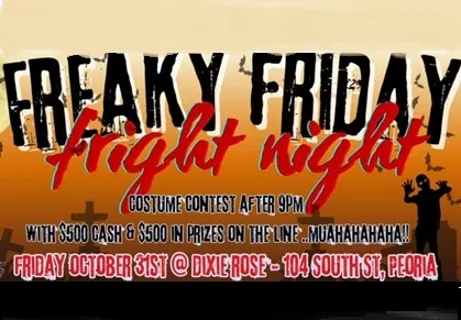 Z923 has Halloween covered AGAIN!! With the next FREEEAKY FRIDAYYY NIGHT FRIGHT NIGHT on Halloween night, October 31st! at Dixie Rose Peoria! Party starts at 9, with ice cold adult beverages featuring...