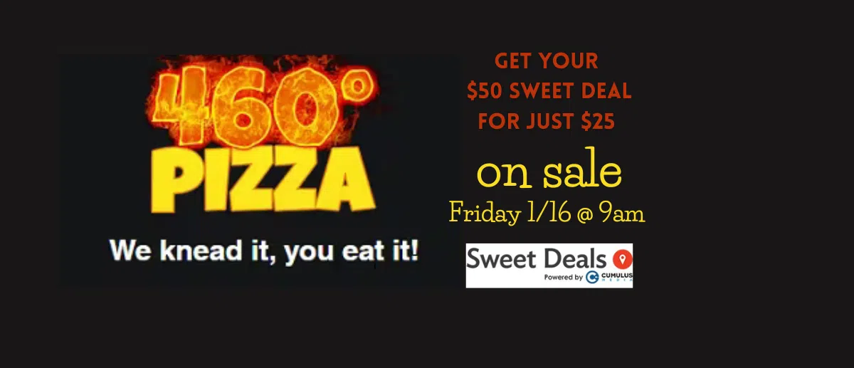 $50 worth of cheesy melty pizza goodness is yours for JUST $25 with the 460 Pizza Sweet Deal! On sale Friday January 16th at https://www.sweetdeals.com/peoria 460 Pizza, located at 8879 Knoxville Ave ...